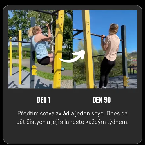 Za 90 dní můžeš cítit, že tvoje tělo opravdu sílí, každý trénink tě posune dál a ty budeš mít kontrolu nad svým pokrokem.